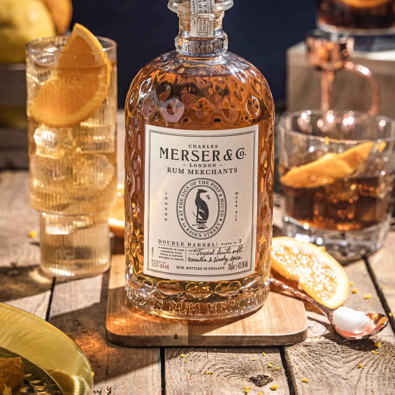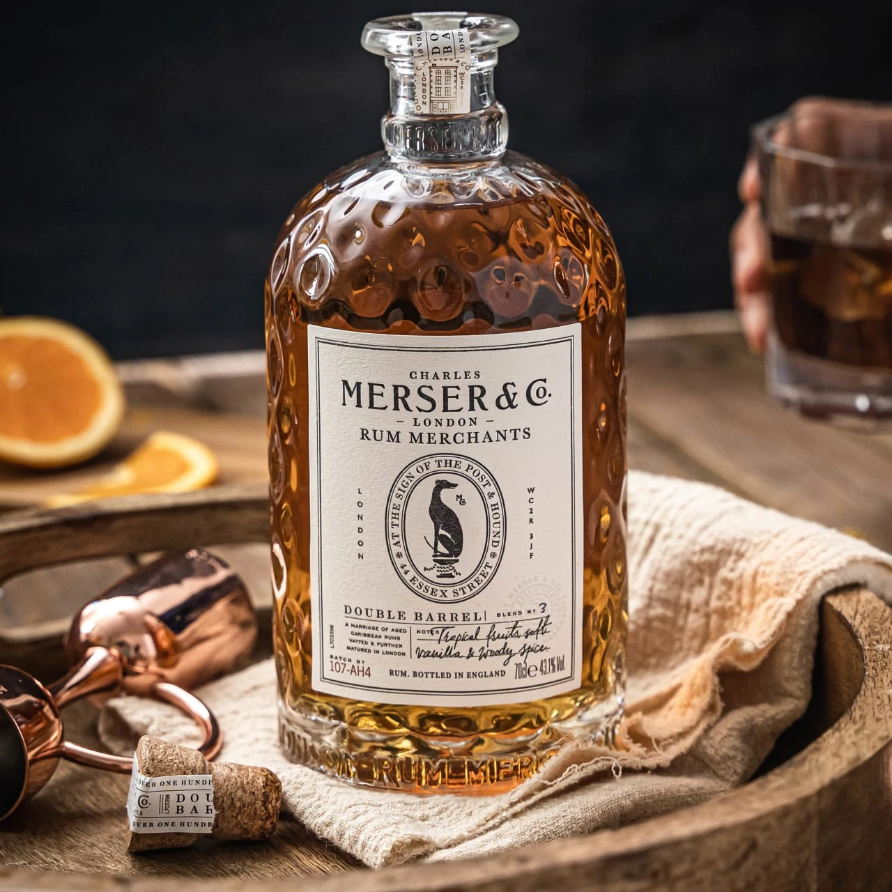 Charles Merser Double Barrel Rum is created by blending carefully chosen rums which undergo a secondary cask maturation – or ‘marrying’ – in the heart of London. No sugar or colour is added.