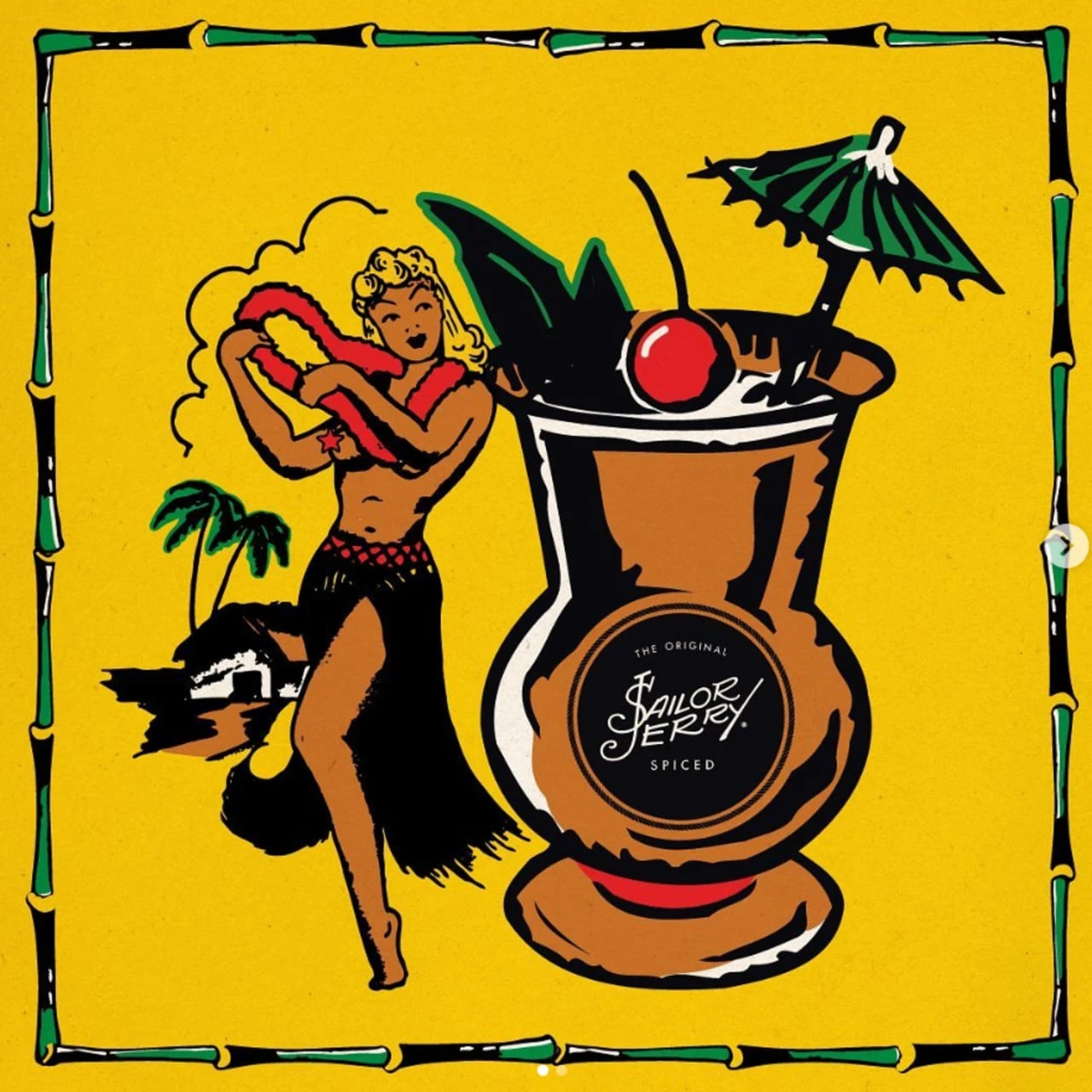 Rum is distilled in the U.S. Virgin Islands is flavoured with vanilla, lime and five spices and is claimed to be based on an original recipe by the famous tattoo artist Norman ‘Sailor Jerry’ Collins who died in 1973.